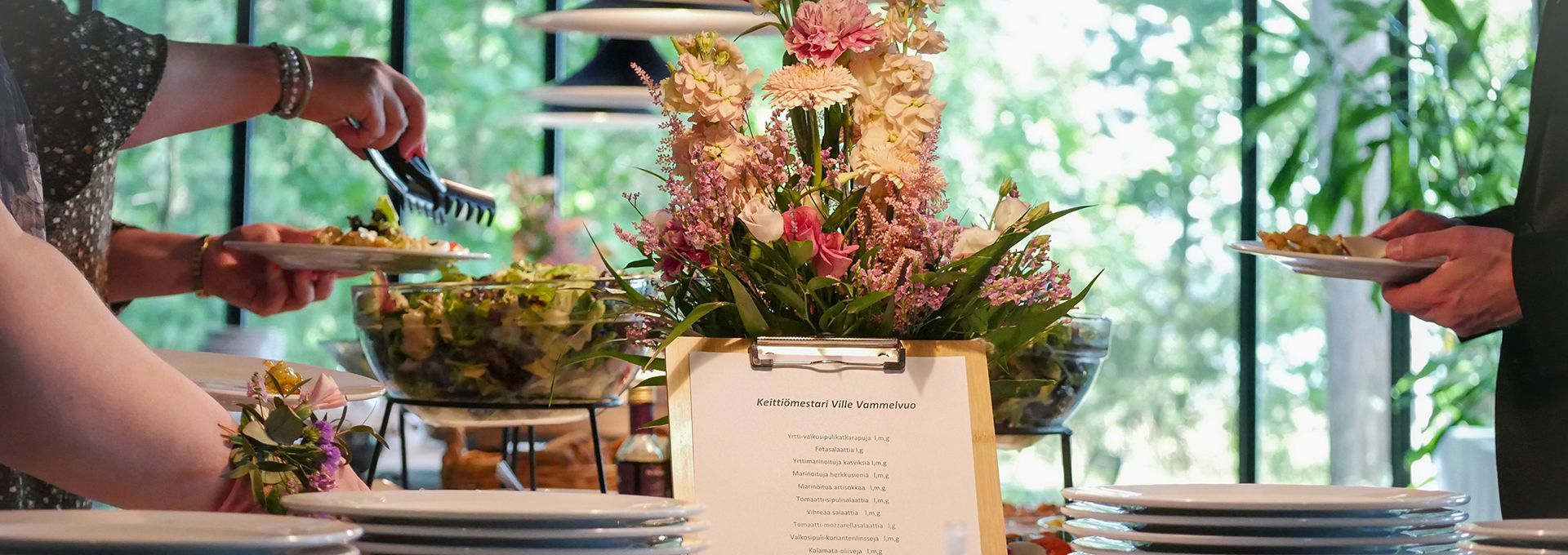 Meiltä saa pitopalvelua alueilla: Helsinki, Espoo, Vantaa, Nurmijär